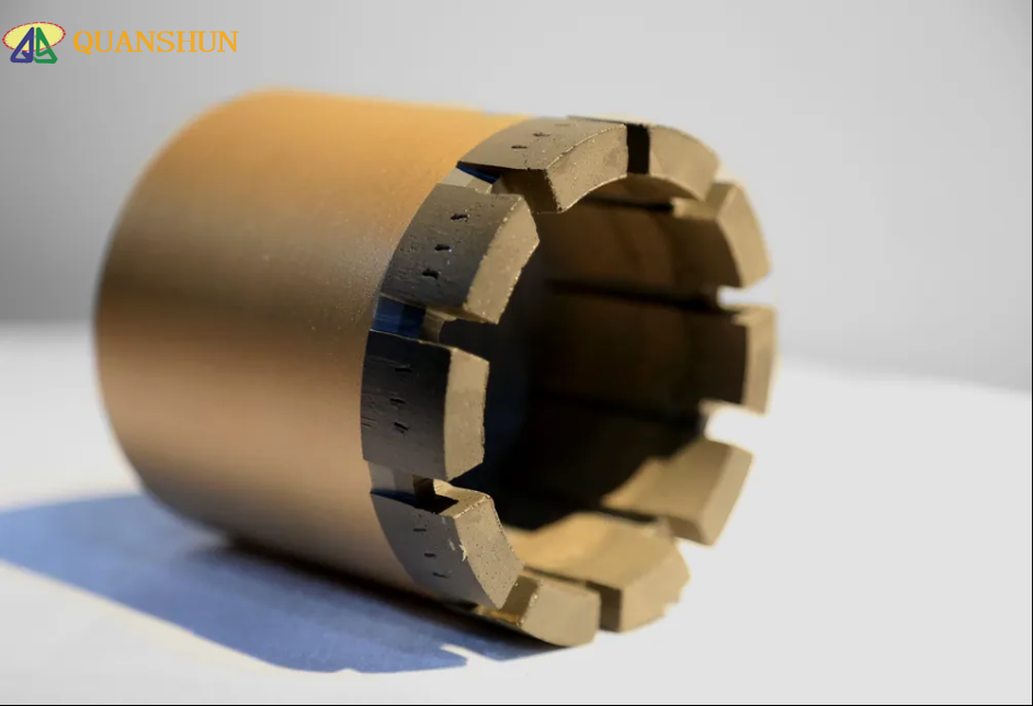 The impreqnated diamond bits have the widest range of application. They are the most commonly useful bits from medium to super hard formations in the mineral exploration industry, the Hardness and abrasive of the rock formation are the key factors to determine the diamond specifications,concentration and matrix hatdnesS. Toothed bits can get higher drilling efficiency when it is drilling at dense or abrasive stratum with lower drilling speed and pressure.It was especially effective at coal formation, using toothed bits can get better water flowing and drling footage effect. Nowadays, Impregnated diamond bits have been widely used in wire-line drilling series.